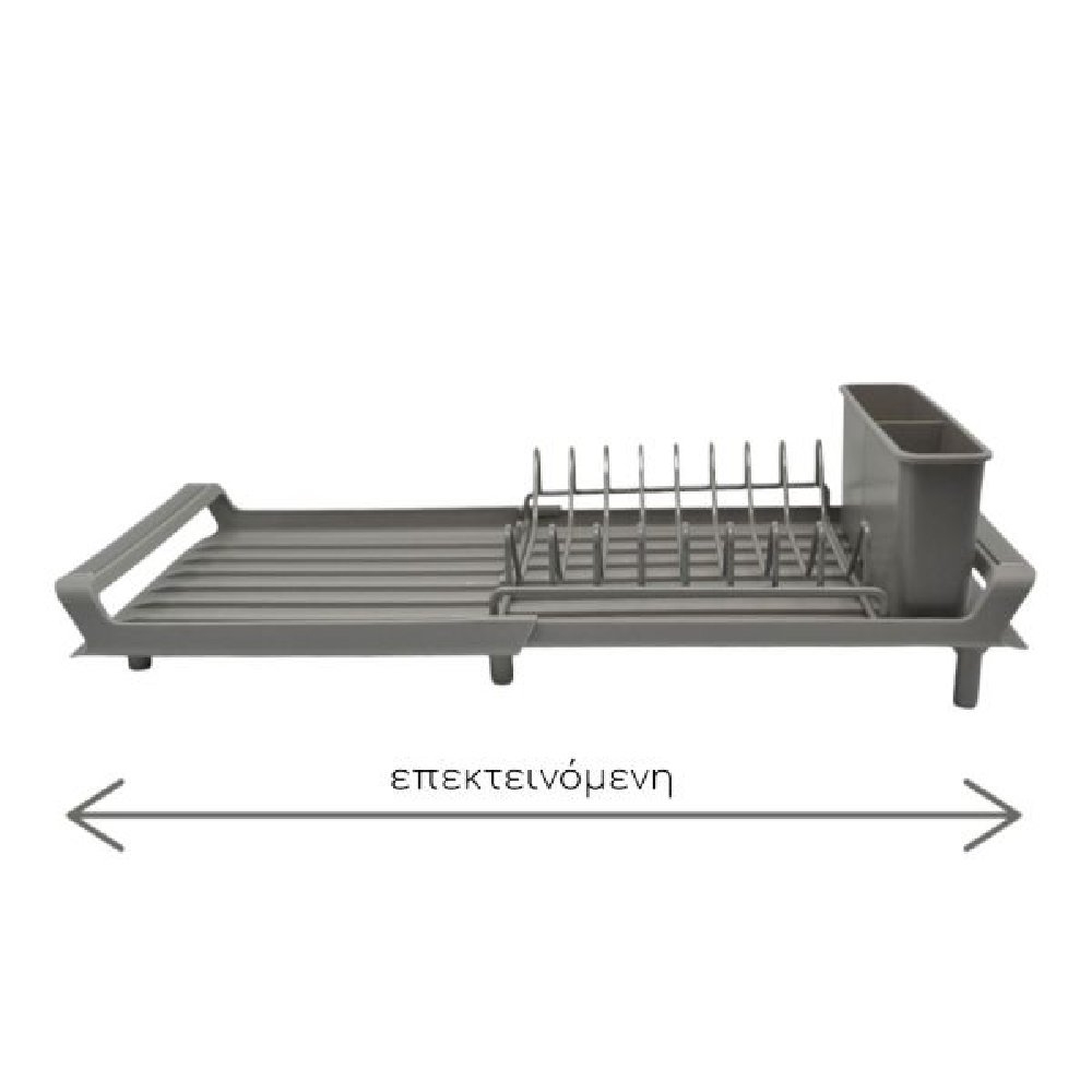 Μεταλλική πιατοθήκη σε γκρι ματ χρώμα, η οποία διαθέτει πλαστικό δίσκο και κουταλοθήκη σε αντίστοιχο χρώμα. Είναι επεκτεινόμενη, επιτρέποντας προσαρμογή στο διαθέσιμο χώρο και αυξάνοντας την χωρητικότητα όταν χρειάζεται. Ιδανική για μικρούς χώρους.