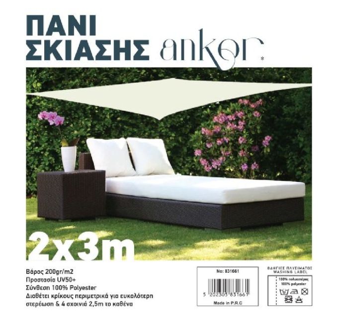 ΠΑΝΙ ΣΚΙΑΣΗΣ ΠΟΛ. 2X3M 200G +4 ΚΡ.+ΣΧ.831661 (ΜΠΕΖ)