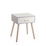 Εξαιρετικής αισθητικής κομοδίνο με συρτάρι και με ξύλινα πόδια και MDF επιφάνεια σε 2 αποχρώσεις.
