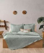 Κουβερτόριο γκοφρέ με πυκνά καπιτονέ σχέδια, από ύφασμα μικροϊνών (microfiber) 100gr/m² με γέμισμα από υποαλλεργικό υλικό 3D hollowfiber βάρους 120gr/m². Εύκολο στη χρήση σαν καθημερινό διακοσμητικό κουβερτόριο, Ενδείκνυται Πλύσιμο στους 40°C.