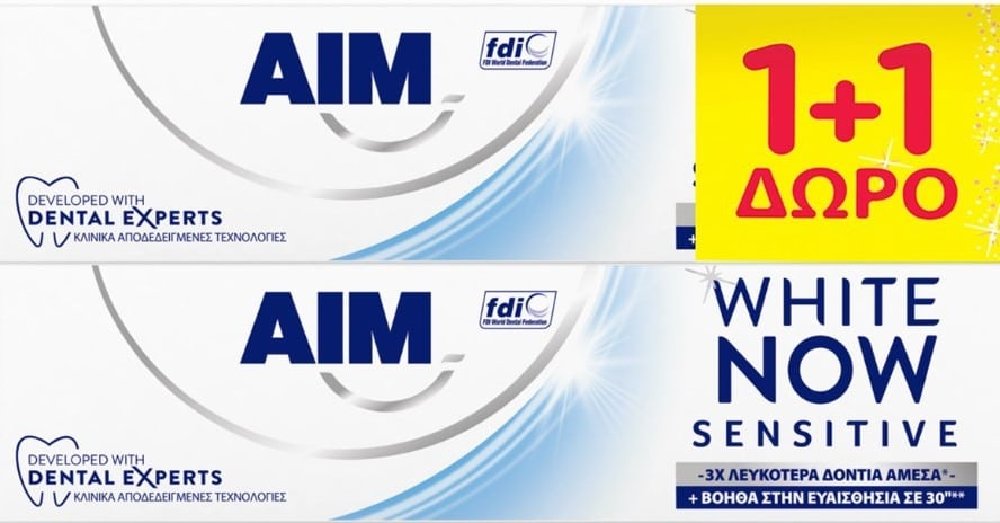 ΟΔΟΝΤΟΚΡΕΜΑ 75ML AIM WHITE NOW 1+1ΔΩΡΟ SENSITIVE
