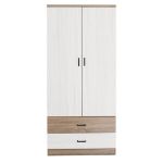 Ντουλάπα ξύλινη σε φυσικό χρώμα, με δύο φύλλα σε άσπρο χρώμα, μεταλλική ράγα για κρεμαστά ρούχα