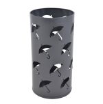 Ομπρελοθήκη μεταλλική στρογγυλή, με μεταλλικό πάτο σε γκρι ματ χρώμα και διακόσμηση διάτρητες ομπρέλες.