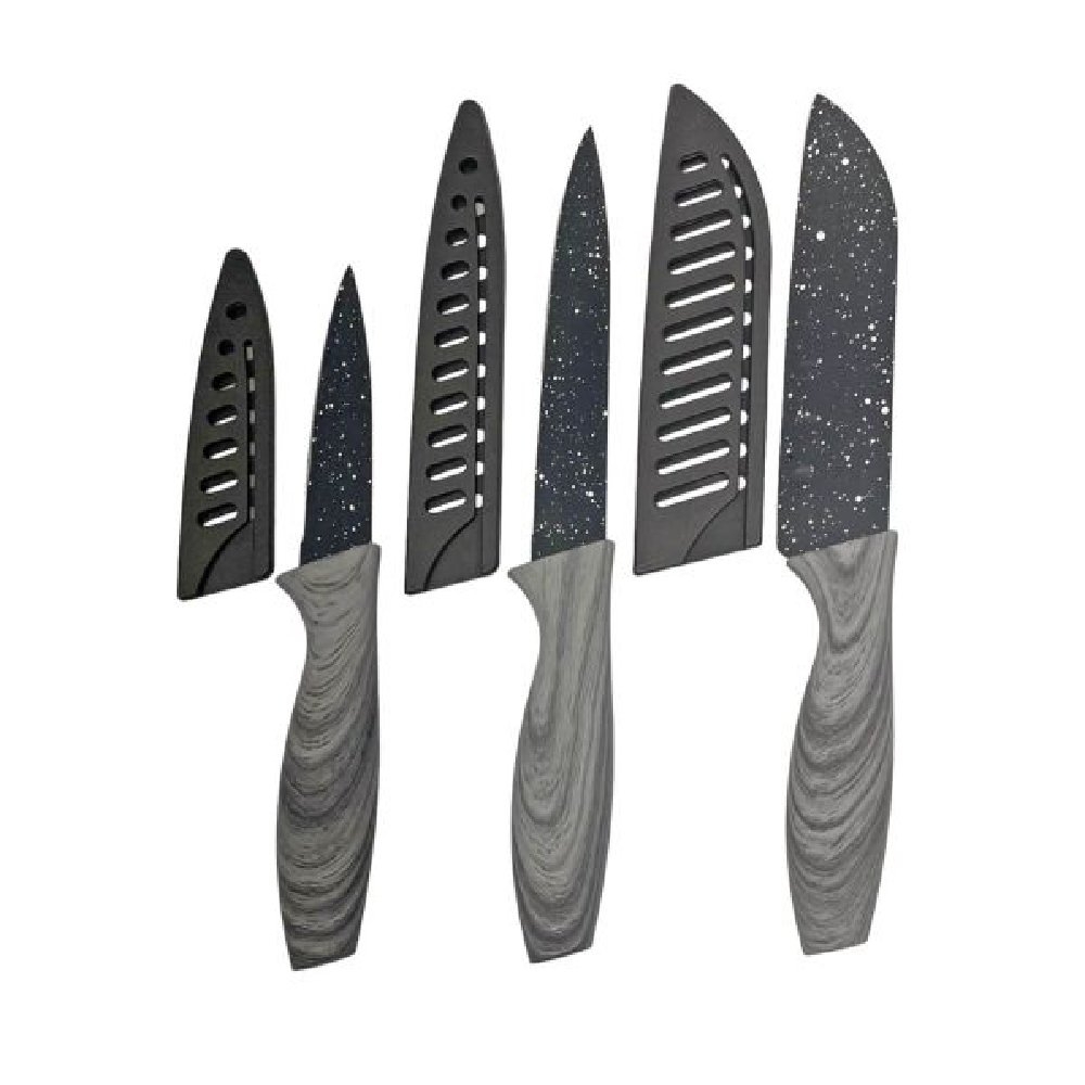 Σετ 3 τεμαχίων μαχαίρια ανοξείδωτα με γκρι pp εργονομική λαβή και λεπίδες με διακόσμηση μαύρου