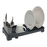 Πιατοθήκη πλαστική με θέσεις για πιάτα, δίσκο και αποσπώμενη θήκη για μαχαιροπίρουνα σε γκρι ματ χρώμα.