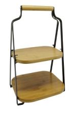 Δίσκοι σερβιρίσματος 2 επιπέδων με μεταλλικό μαύρο σκελετό και δίσκους από ξύλο μπαμπού.