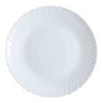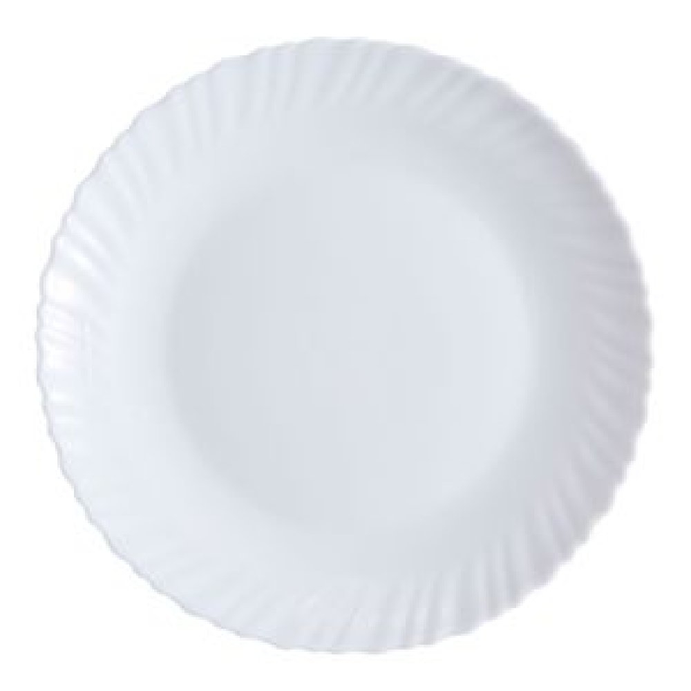 Γυάλινο πιάτο από οπαλίνα σε λευκό χρώμα, στρογγυλό, ανθεκτικό στη θερμότητα και ελαφρύ. Κατάλληλο για πλυντήριο πιάτων και φούρνο μικροκυμάτων, ιδιαίτερα πρακτικό για καθημερινή χρήση.