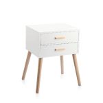 Εξαιρετικής αισθητικής κομοδίνο με 2 συρτάρια και με ξύλινα πόδια και MDF επιφάνεια σε 2 αποχρώσεις.