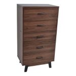 ΣΥΡΤΑΡΙΕΡΑ ΞΥΛ. 5 ΣΥΡΤ. ΜΕ ΠΟΔΙΑ ΧΡΩΜΑ 7 60x40x112ΥΨ. Συρταριέρα ξύλινη σε καρυδί χρώμα με πέντε βαθιά συρτάρια (εξωτερικό ύψος 13εκ. εσωτερικό 11εκ.), κομψά πόδια και χερούλια σε μαύρο χρώμα. Είναι λειτουργική με μοντέρνο σχεδιασμό, ιδανική για πρακτική αποθήκευση.
