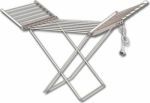 Θερμαινόμενη ηλεκτρική απλώστρα κατασκευασμένη από 100% αλουμίνιο (πόδια, βέργες) και ανθεκτικό πλαστικό. Διαθέτει 8 θερμαινόμενες βέργες αλουμινίου στο κυρίως σώμα και άλλες 12 στα φτερά, διακόπτη ON/OFF με φωτεινή ένδειξη λειτουργίας και κάλυμμα σιλικόνης για προστασία από το νερό, φις σούκο για μέγιστη ασφάλεια και καλώδιο μήκους 1,4m.