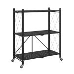 Μεταλλική ραφιέρα 3 επιπέδων, τροχήλατη και πτυσσόμενη για εύκολη αποθήκευση, ιδανική για οργάνωση οικιακών χώρων και αποθήκης.