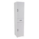 Ξύλινη στήλη με ράφια και συρτάρι κατασκευασμένη απο MDF και Μελαμίνη ,ιδανική για την οργάνωση και αποθήκευση αντικειμένων όπως καθαριστικά,πετσέτες ή καλλυντικά. Η πόρτα μπορεί να τοποθετηθεί με αριστερό ή δεξί άνοιγμα ανάλογα τις ανάγκες του χώρου σας.