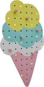 Ξύλινη κρεμάστρα τοίχου παιδική σε σχήμα παγωτού. Διαθέτει φωτάκια μπαταρίας led και έξι αποσπώμενες κρεμάστρες για μεγαλύτερη ευκολία στη χρήση.. Κρεμάστρες για τους μικρούς μας φίλους με εργονομικό σχεδιασμό ιδανικές για κάθε παιδικό δωμάτιο.